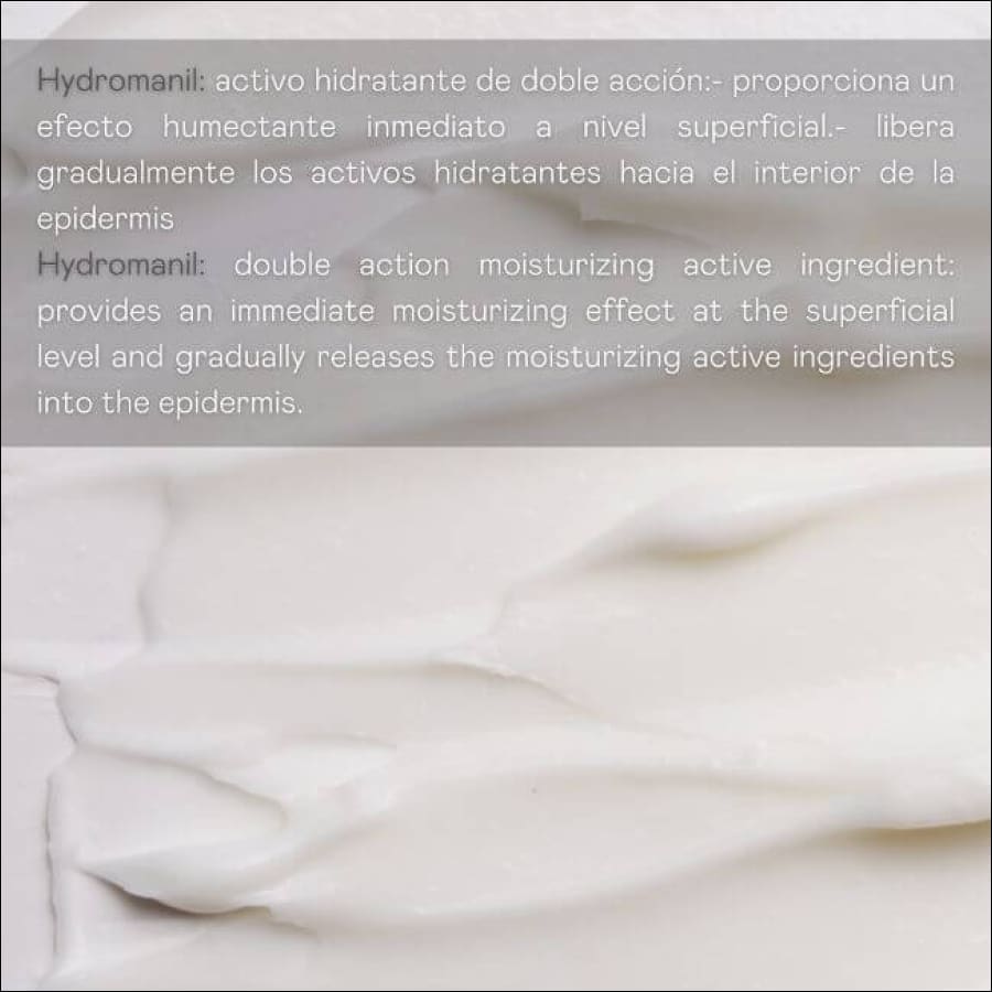 Es una crema hidratante de última generación que contiene Hydromanil®, un activo hidratante de doble acción que proporciona un efecto humectante inmediato a nivel superficial y libera gradualmente los activos hidratantes hacia el interior de la epidermis.